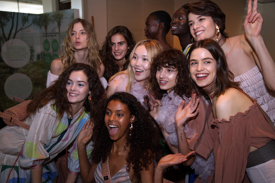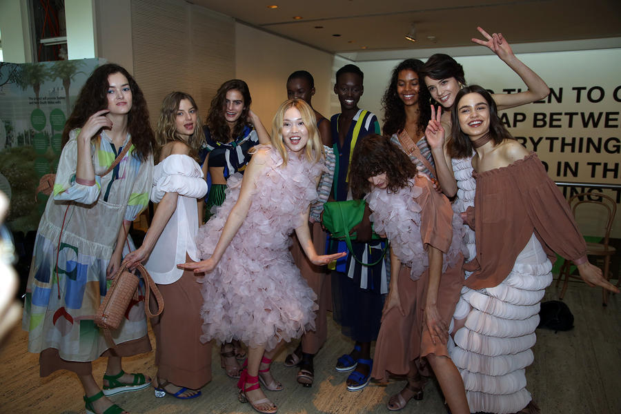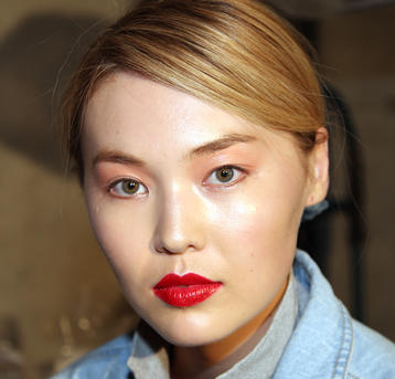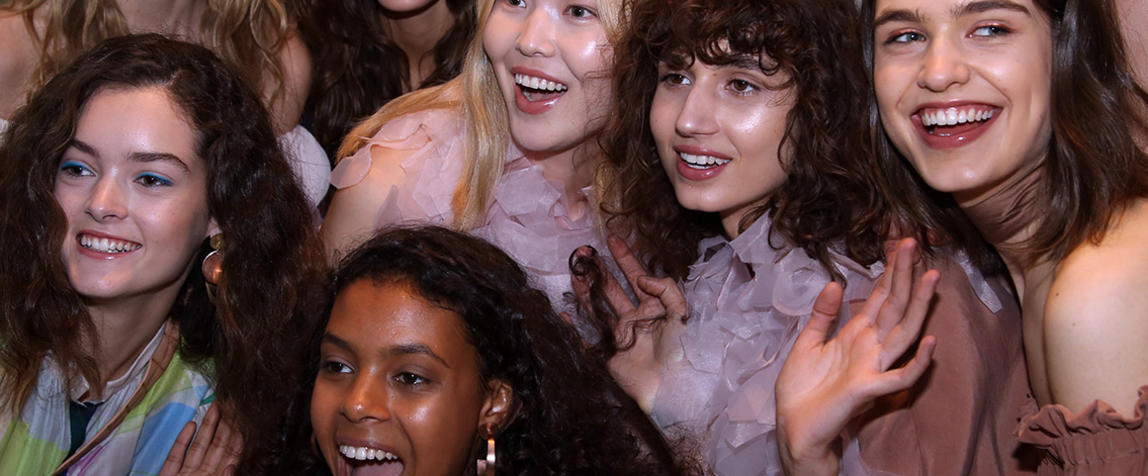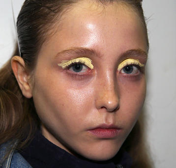 “The collection is very colourful and playful so the looks are inspired by that. We’re doing four different looks today, and most of the girls have ‘the nude look’ which is all about radiant glowing skin. We’ve incorporated the Parisienne Glow into the looks again, and it’s all about capturing the luminosity in the skin and we’ve used the Lancôme Eclat Miracle to achieve that. The other three looks are incorporating a pop of colour, so for one we have a beautiful, Ginger & Smart copper liner on the top lash line using our Genifique Eye Light-Pearl serum mixed with shadow. The second liner look we have is a really beautiful sapphire blue; and then the final look we have is what we’re calling the ‘sunset look’, which has a bright yellow on the eyelid with a warm colour through the socket. On the skin we’ve started with Advanced Génifique to give the skin a healthy glow, and then we’ve used two primers - the La Base Pro and a base colour highlighting product. We’ve used Teint Miracle for the foundation to keep it subtle and then for a highlight we’re using Eclat Miracle. We’ve used some Belle de Teint as a contouring product to enhance the cheekbones and then the lips kept nude. For lashes we’re using Hypnose brown mascara on the blonde girls and for the darker girls we’re using black - but everyone has brown lashes on the bottom.