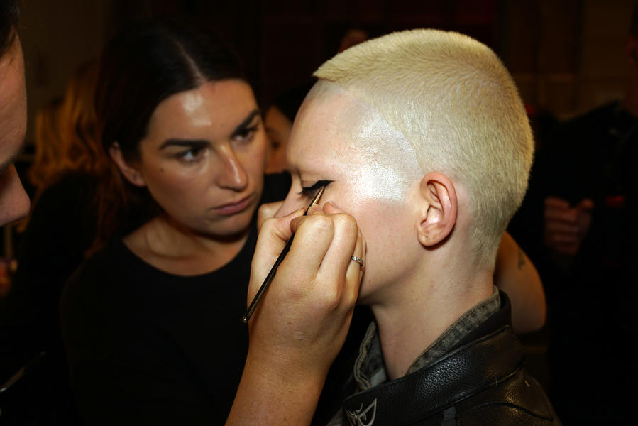“I think everyone’s pretty excited to see tonight’s show because GIA has incredible clothing that is worn by super individual girls [and guys]. Tonight they’re celebrating their huge following that’s built them up into this amazing brand, and they’ve cast total individuals in the show. We didn’t really get a brief as much as were told to work with these models who were hired because of their individuality. There’s no point bringing them in and giving them all a ponytail and making them all look the same because that’s not the direction of the show. There’s 40 models which has been a challenge but everyone has their own look. The hero product is One United. It's a multipurpose spray that we've misted through the hair and it's layered with Fashion Waves 07 to give it some grit.”