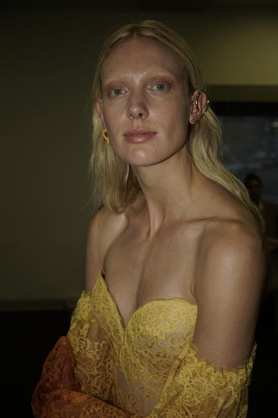 "Jonathan was very excited to come here and hold his show at Bondi Beach and the theme of his show is golden hour. His clothes have a lot of texture to them so I wanted to makeup to have texture too.We want the girls to look like they've just stepped of the beach – glowing but with emphasis on the eyes, cheeks and lips.