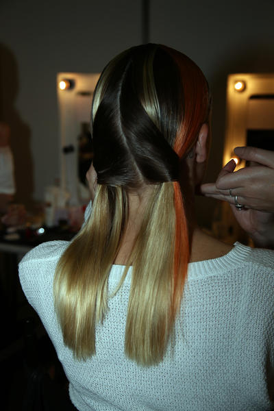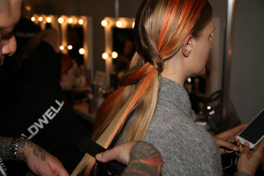“The look for Karla Spetic is quite sleek and sporty. We’ve gone with two different looks, both of which are quite slicked back, we’ve also incorporated two different colours this season which are found in the clothes - dusty pink and orange. We started with Goldwell StyleSign Crystal Hi-Shine Mousse Wax which gives the hair a lot of strength and holds everything together without making it too stiff. Then we followed up with the Goldwell Volume Double Boost Spray which gives the hair a softer finish and then at the very end we’ve used some Goldwell StyleSign Magic Finish just to hold everything in place.”