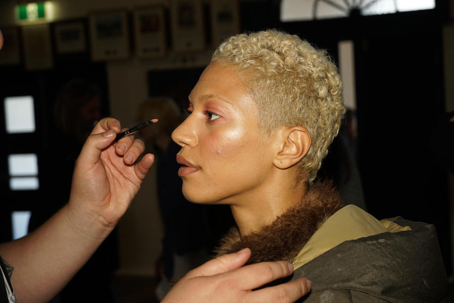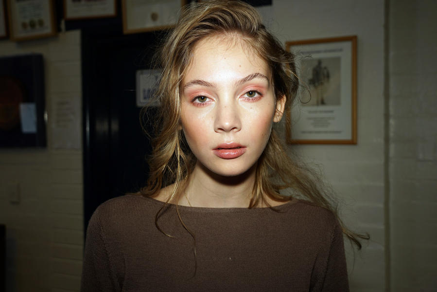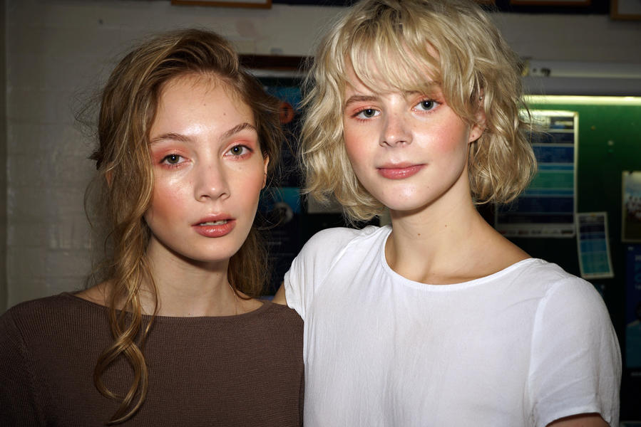“The inspiration behind the look was to give the girls a translucent feel throughout, like they were being lit from within, a bit like a stain glass window. The skin isn't overly dewy, we've seen a lot of that in the past, so to modernise it, we've given it more of a pearlescent feel. The only thing that's glowing is the inner corner of the eye which gives the girls a lovely ethereal look. A lot of Karla's fabrics have got a beautiful sheer glow and that's what I wanted to achieve with the makeup. The colour palette is coral and we've used the same colour on the eyes and on the cheeks with the Smith & Cult Book of Sun Chapter 1 palette.