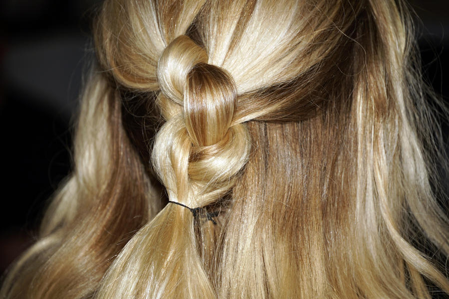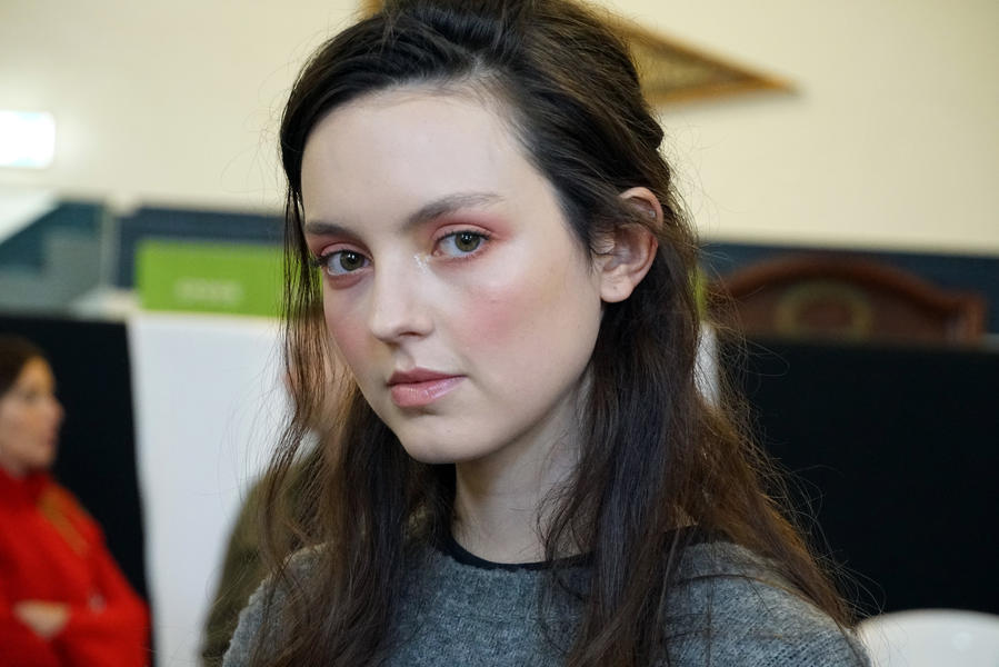 "We really wanted to work with something quite relaxed because of Karla's aesthetic. We bought it back to something that quite quintessentially Karla because it's her tenth year as a designer. We worked with a strong volumnising spray – the Oribe Maximista Thickening Spray – through the roots, to create almost like a grunge pieceiness and then we've used a lightly oil-based blow dry spray for more of a silken gathered feeling. We've also used a Topsy Tail which really helps to add texture to the back of the hair. A lot of the girls have quite blunt, single length hairstyles so this tool helps create quite grungy layers."