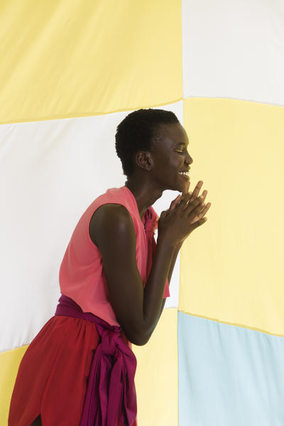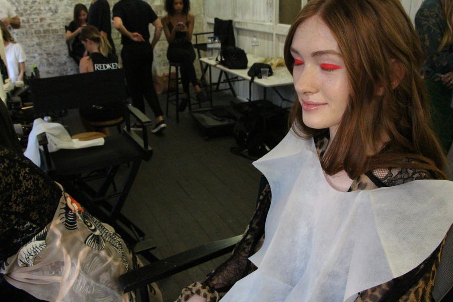 "The show is all about happiness and freedom, the red balloons are a symbol of that! I've actually bought a lot of colour into the look with a renewed version of Color Atelier - 100 eye shadow shades inspired by Tokyo (but these ones aren't out until late June). Kate picked about seven different colours for the looks and I've used whichever one is suitable for the skin tone. For example, some of the blues might look green on Asian skin so we've avoided that. For the face it's a really glowy look using purely face oil.