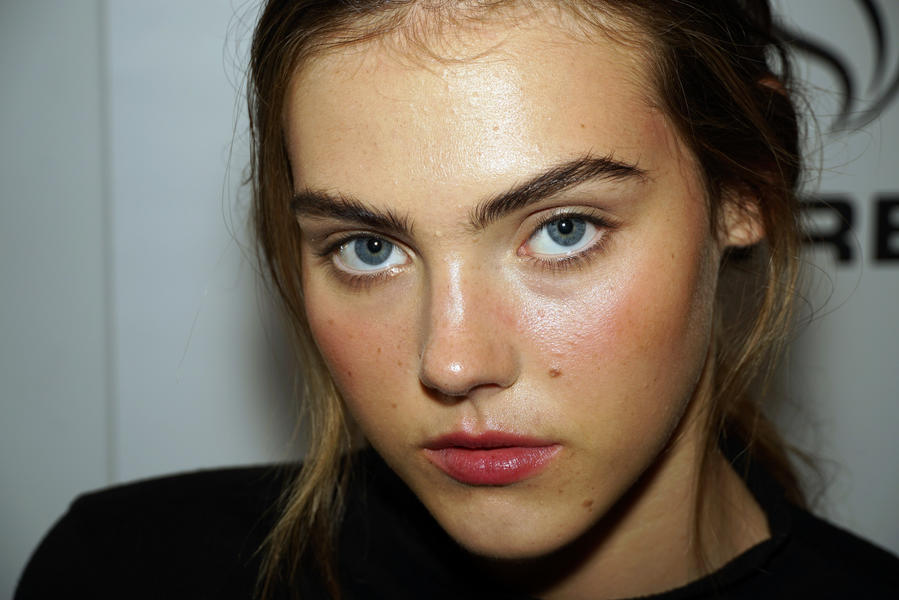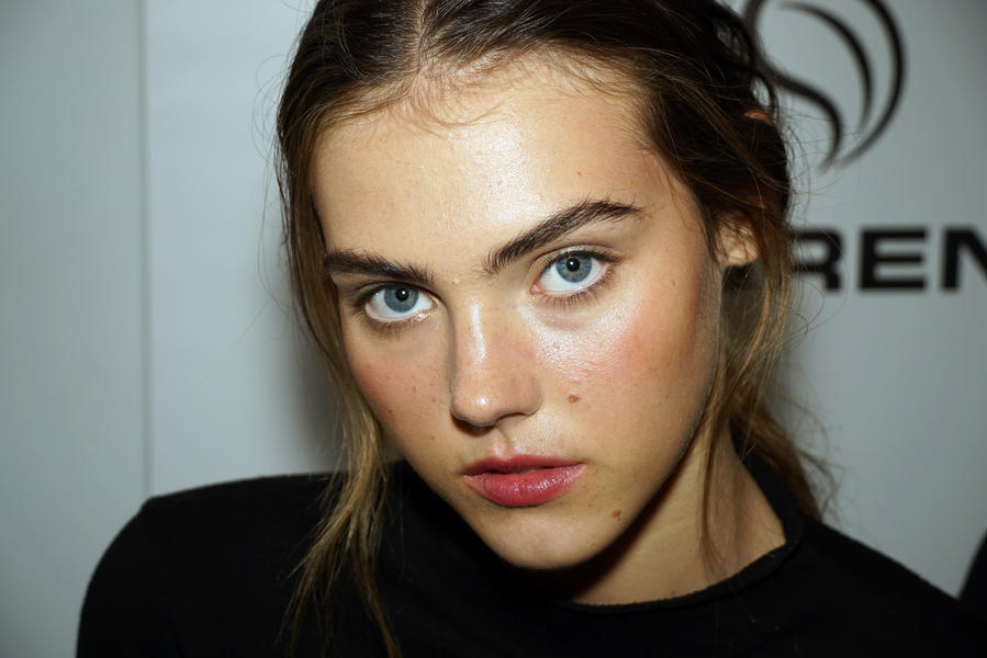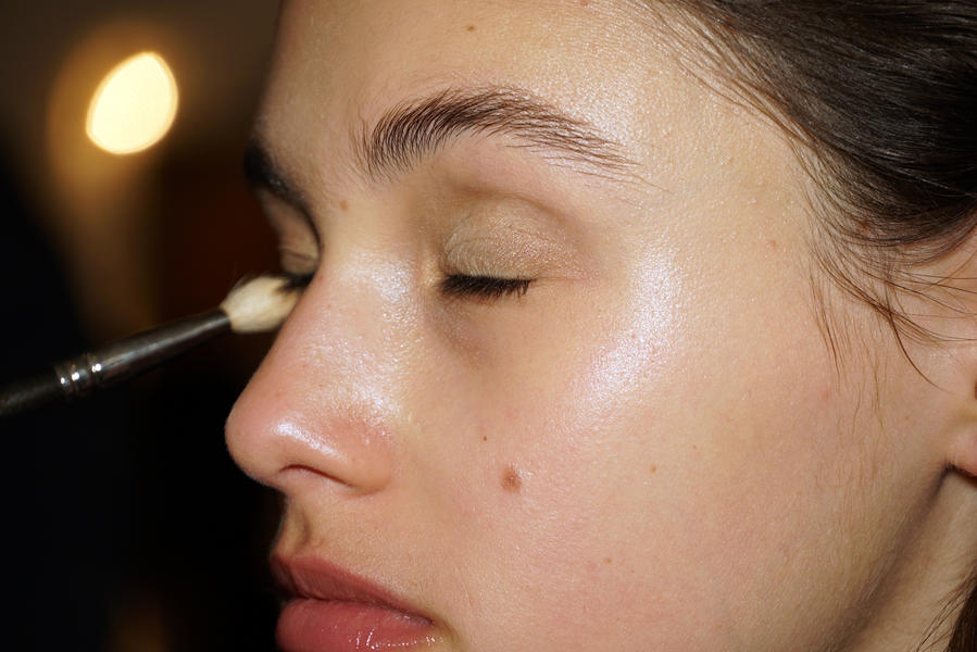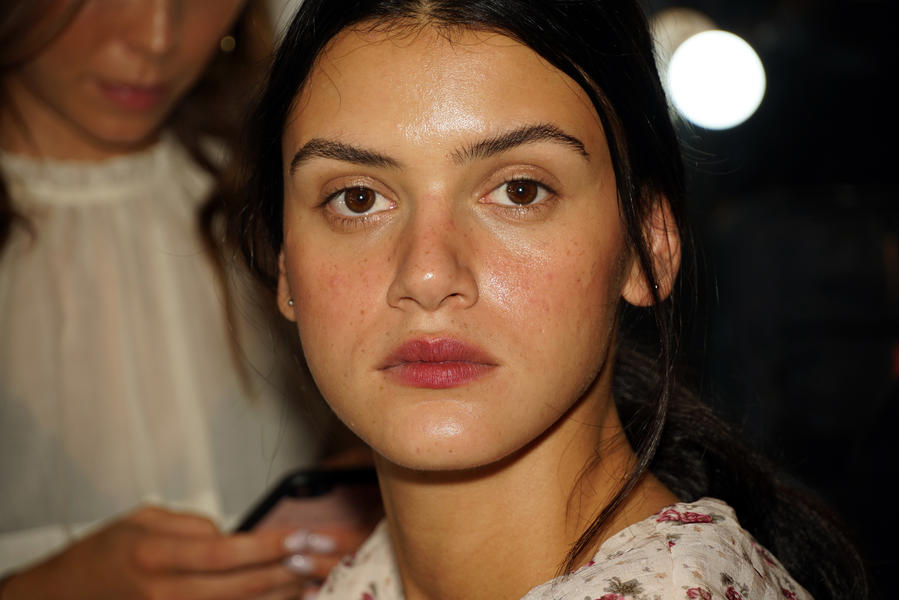 We’re working with the Rouge G lipstick (a combination of lipstick and a blam) and placing that on the lips as it leaves a stain. It also works on the cheeks and with all skin tones as we have a wide variety of nationalities walking today. The other product we’re using is the Guerlain Bee Glow to plump the skin and give the girls youthful, dewy skin with realistic highlights.”