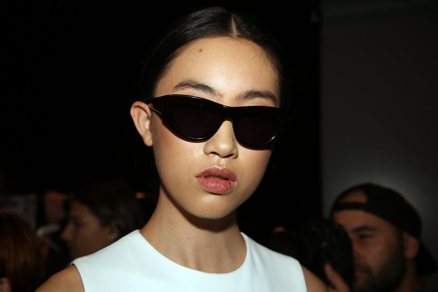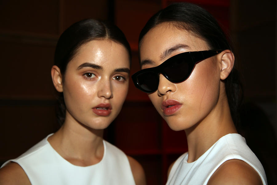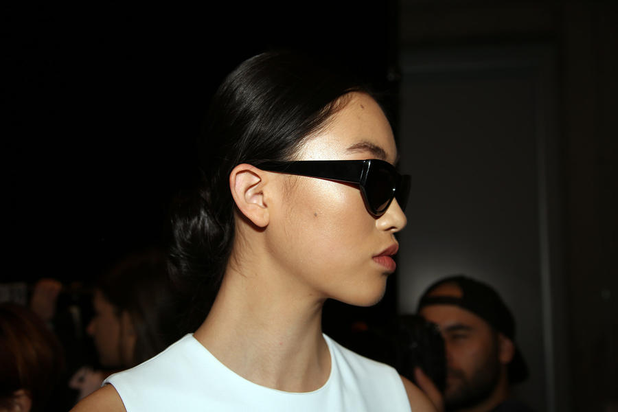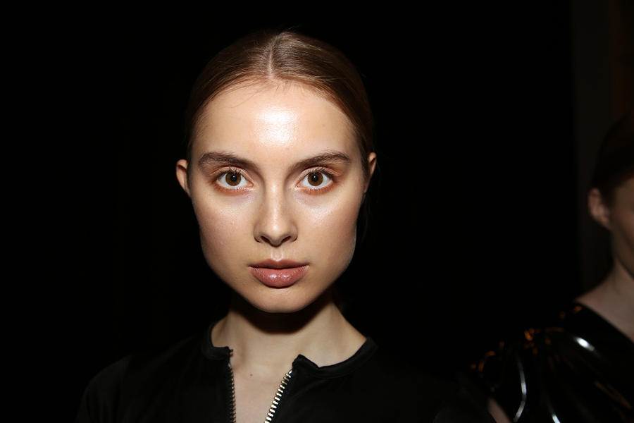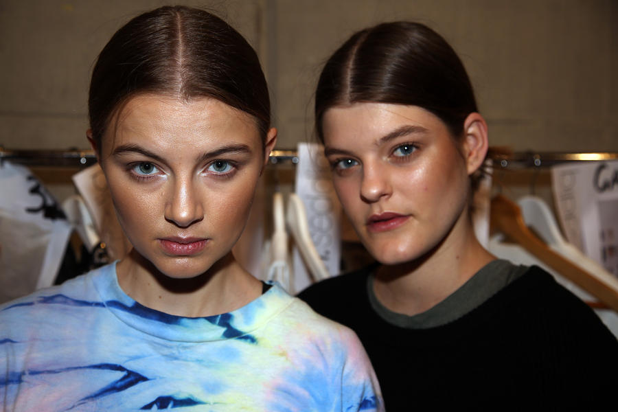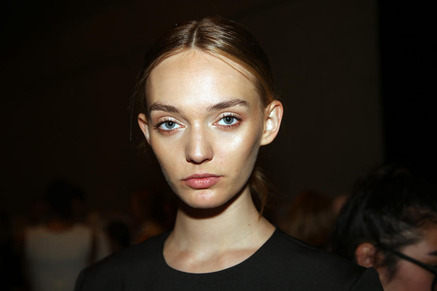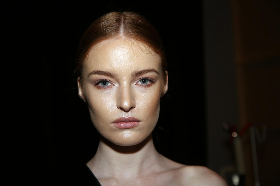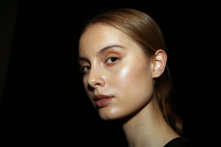 “So basically a lot of her clothing is quite detailed so she’s kept everything quite minimal with the hair and makeup. Really subtle and natural. Our makeup today is very wet, dewy and flawless. There’s not a lot of coverage with the foundation, brushed through brows, lips that look untouched with just a tint through them. The cheeks are quite bronzy and the eyes have a terra cotta wash over them with no structure or shape to it. The mascara is undone and just brushed through so it has a tint. To prep the skin we’ve used our Refreshing Face Mist, we then applied our Under Makeup Base. We next used our Liquid Illuminator on the cheekbones and eyes, our Freedom Eyeshadows all over the lid. Brow Shaping Gel through the brows and Waterproof Mascara. For the lips we’ve used a Soft Precision Pencil with some lipstick over the top.”