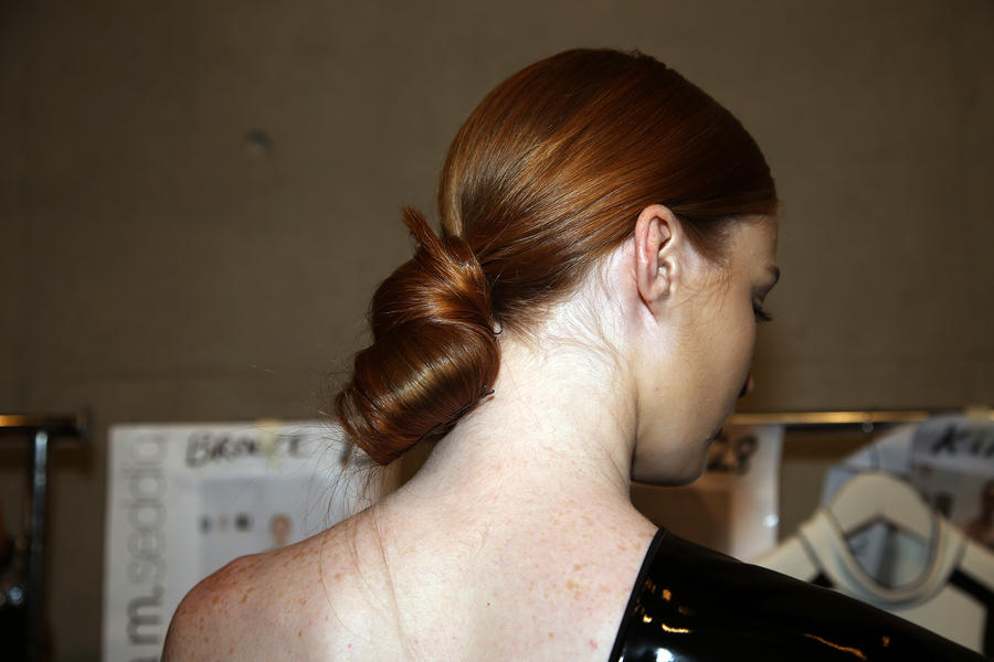 “The look that we put together for Mariam was a slicked back pony with a centre part and a special twist at the back which made it really individual. The hero products that we’ve used are Redken Satinwear 02 and Fashion Works 12. Nothing to finish it so we’re keeping it really natural and pulled back.”