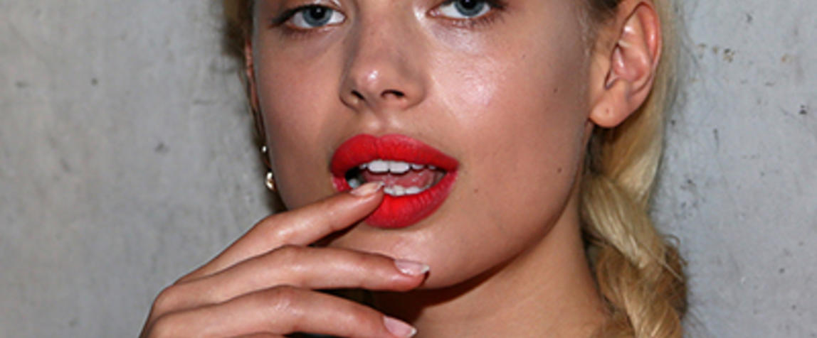 Make-up look: “It’s fun and fresh. The collection isn’t too serious, and we wanted a look that will go with a whole range of different outfits as both Ready To Wear and Surf and Sun will be shown. We chose a bright lip but we also wanted to keep that fun, fresh Aussie vibe - that ultimate sheeny skin. We’ve conditioned it with my favourite pre-done mix - half Fix+, half softening lotion, and 10-15 drops of the Careblend Oils. It was sprayed onto the skin and massaged in - it creates almost a glaze rather than a moisturiser. The skin is also highlighted and sheered out like a glazed donut, and with the highlighter placed on first we didn’t need as much foundation. The lip has been created to look like a neoprene texture. It’s a matte lip in a custom watermelon shade then Magenta Madness pigment is patted over the top and the edges blurred to keep it young and fresh."