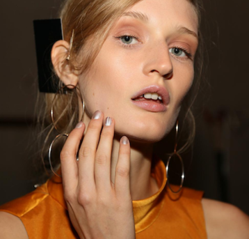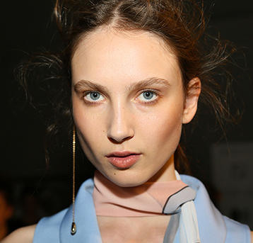 Hair look: “Emma was inspired by 1960s sci fi for the beginning of the collection and then transformed this to be more inspired by Gregg Araki films and the idea of exploring gender transition and neutrality and the coming of age of trying to find yourself. We decided we would do a different look on every girl, 21 girls, 21 different hair styles. We've got girls who we've been able to cut their hair, some we've been able to colour, we've got a bunch of different wigs I bought at downtown Brooklyn. If you look, there is this theme of roundness and hint of 1960s sci fi but at the same time, they are this gang of girls who have been partying for three days and it's day three. We're just going crazy with the hair - cuts, colours, whatever we want to do! On the flip side, there are these moments of respite in the beauty in the show with girls who have a fresher look. We're leaving them with their natural hair - blowdrying their hair with a round brush, applying a little bit of Diamond Oil and a little bit of Pillow Proof Primer so it's really silky - and then we're popping a couple of braids in to make it feel playful. It's hair that has had some thought, but not too much thought."