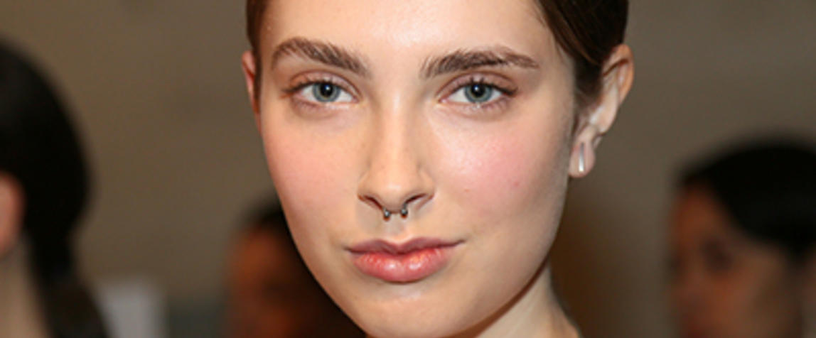 Make-up look: “We kept it really simple for Karla Spetic. We wanted to focus on skin. We've used the Drops Of Youth Concentrate that instantly rejuvenates the skin. We then popped on the Fresh Nude Foundation which is infused with rose water - so smooths out the skin. Then on the body, we put the British Rose Body Lotion - which is a beautiful, light, shimmery hydrating lotion. Make-up is very minimal and youthful - basically the girls look like they have had 48 hours of sleep and woke up fresh. Glowing skin is the feature, but we've popped a little bit of tint on the cheeks to give a slightly flushed look - I didn't want it to be too over-powering. Brows are brushed up."