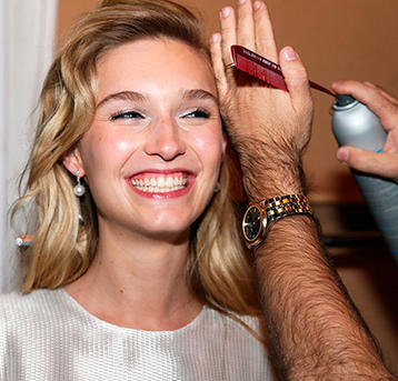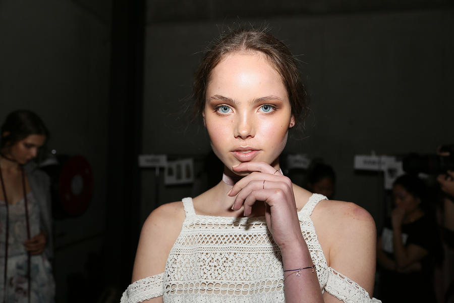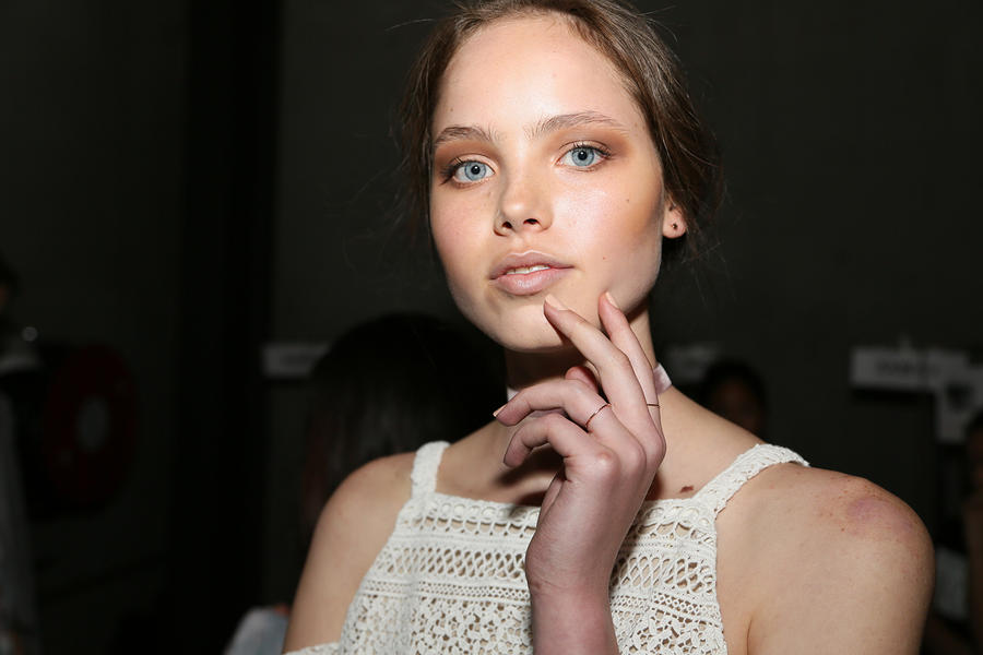 Make-up look: “I wanted to play up the girl’s natural features. Nothing too crazy - just a cutesy twist on their natural look. Brows are kept as is, with a soft natural wash over the eyes. A little peach flush to the cheeks, with some freckles given to some of the girls.”