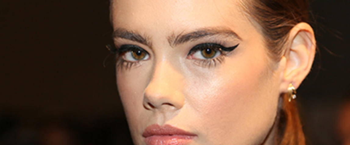 Make-up look: “We wanted a really edgy look. So it was all about having clean skin with a focus on the winged eye. It’s a really, nice big winged eye that wouldn’t have been possible without the Divine Line Liquid Liner. There’s also a really nice highlight on the face that’s a combination of our glowy foundation with Ego Cheek Highlighter.”