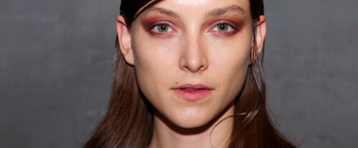 Make-up style: "We wanted this look to be a mix between grungy and clean. It's all about bare, naked skin with a really strong eye. The brows are brushed up with a clear brow gel for a really defined effect. We've used two purple shades on the eyes that are smoked out a little bit, to really make them pop. For the skin we've used CC cream and then a BB cream for undetectable coverage. The lips are also really bare and we've only applied a touch of the Lip Velvet for some sheen and shine, but nothing obvious. It's really all about the eyes and brows on bare, beautiful skin," says Victoria Curtis.