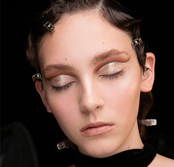 Make-up look: Over the two looks Sam opted for a smouldering eye with dewy skin and a fashion forward look with reverse ombre lip.