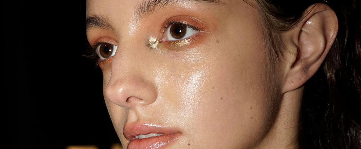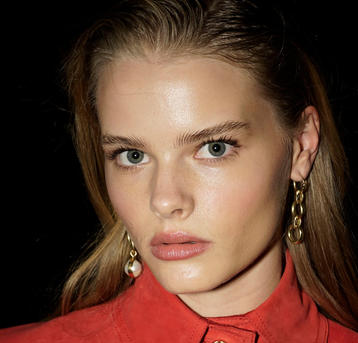 On the skin we've used a lot of product to prepaid hydrate the skin including Prep+Prime Softening Lotion, Fix+, Strobe Lotion, Care Blend Oil and a touch of Studio Finish Concealer. We're also highlighting with that same mix of products."