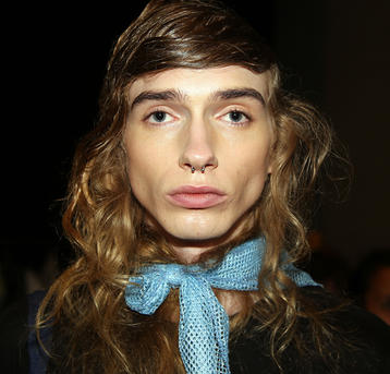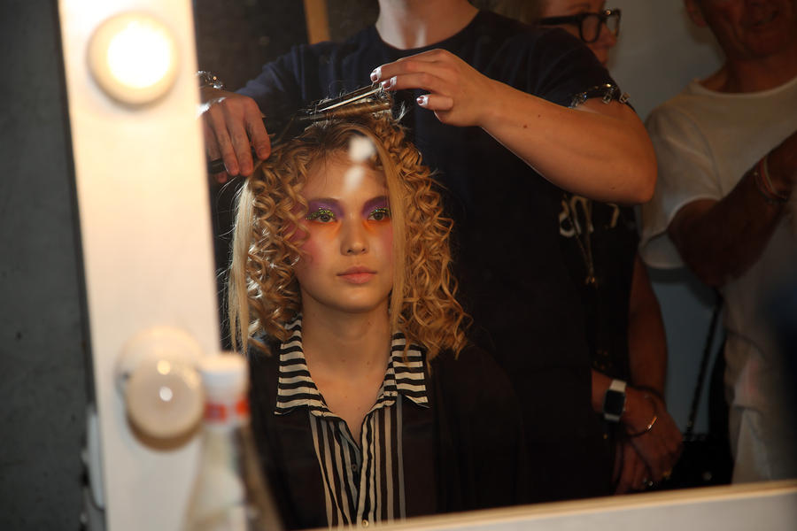 “I’m giving a nod to the homage of Del Kathryn Barton with what I’m doing but I want it to be in a more relevant way. A lot of her work is very bold and strong but I want to bring in a looser wave with some curls and movement. There’s a lot of reference to 70s and 80s disco so I’ve been thinking about perms and flat tops - it will be a bit more of a disco frizz rather than a curl on some of the girls. There’s also a soft pastel moment from Goldwell happening on some of the looks, an ethereal vibe, which fits perfectly with this year’s Romance girl. The products have been working amazingly for this look because all of them have that brushable nature. We’ve been using KMS Curl Up Wave Foam Mousse and KMS Add Volume Liquid Dust on towel dried hair, then when we backcomb we’ve been applying KMS Makeover Spray to add that texture and grip. Lastly we’ve used KMS Hairstay Working Hairspray to secure the hold.”