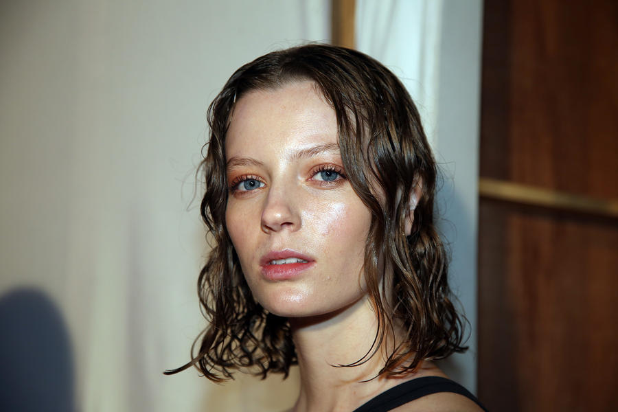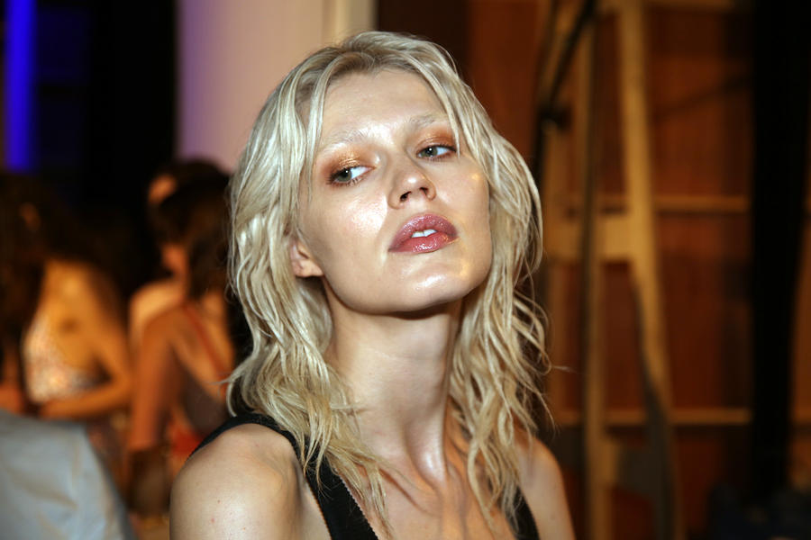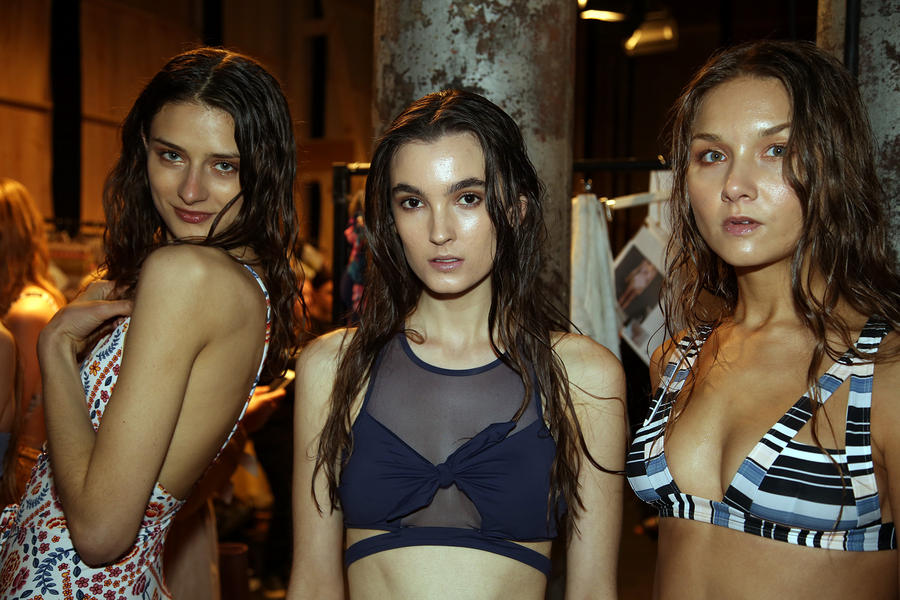 “Today with the Swim collections we really wanted to deliver the real Australian girl coming out of the water and standing on the beach. We didn’t use any heat styling tools, we went straight in with the products which are Redken Rootful 06 and Redken Iron Shape 11. We drenched the hair in the product and worked with about three coats. We’ve twisted the hair slightly but that’s it - it’s all about the girls looking like damp natural beauties.”