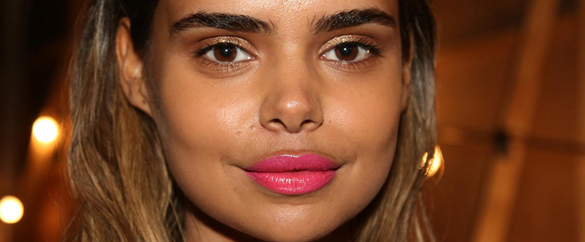 “Because this is the Swim show, we wanted to keep the base really clean, fresh and organic.We’ve focused on prepping the models with Napoleon Complex Skin Renewal Serum and then we worked in the Napoleon Perdis Auto Pilot Pre-Foundation Primer and that preps the skin and creates a beautiful, clean canvas. We then used light concealing and foundation but only if the models needed it. The hero of the look is the Napoleon Perdis Loose Eye Dust in Copper Element and the Total Bae Tone It! In Hot to Trot which is almost wrapped around the eye. We wanted to give a real oil slick, coppery effect on the eyelid. It’s a really fresh beautiful look. The lips are drenched in hydration with the Napoleon Perdis Auto Pilot Lip Service.”