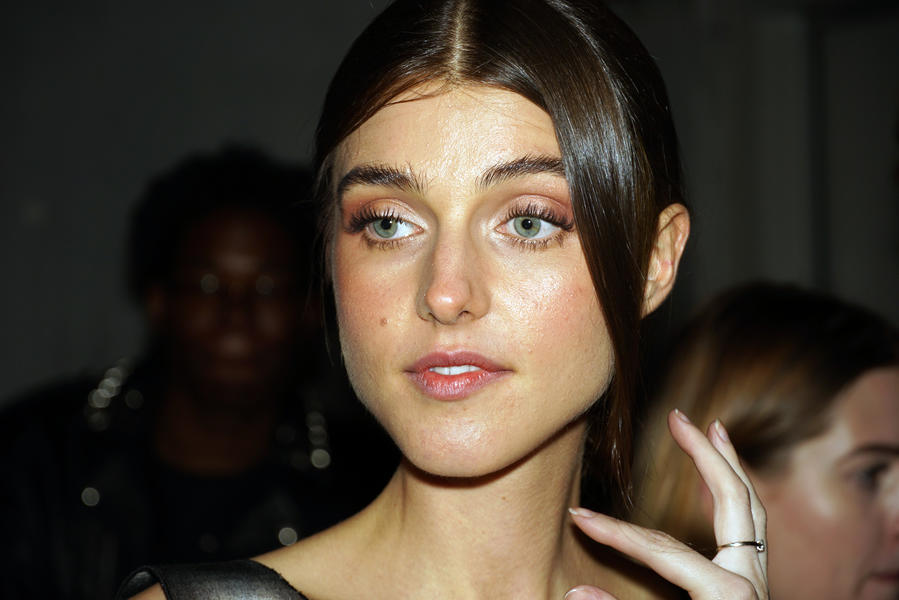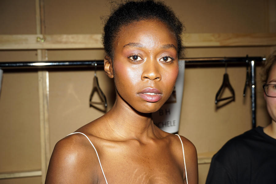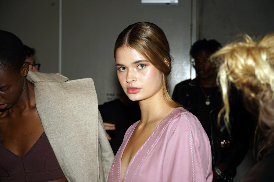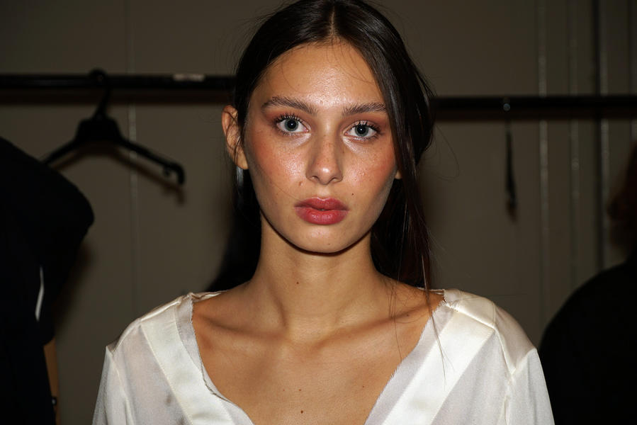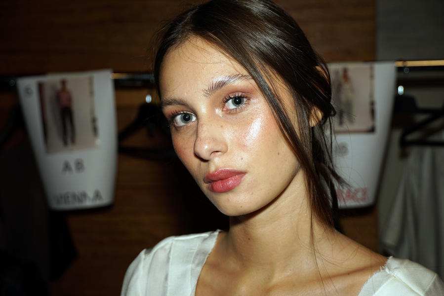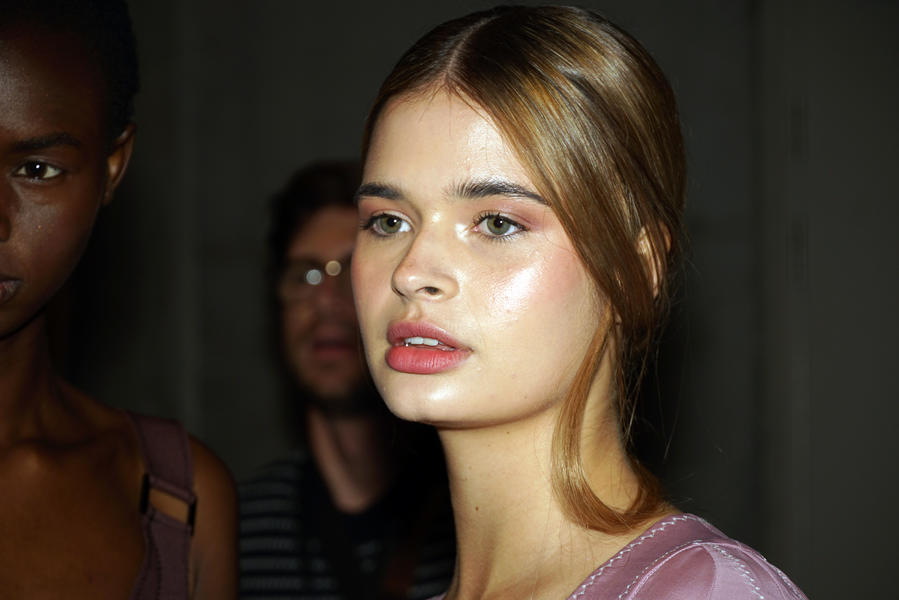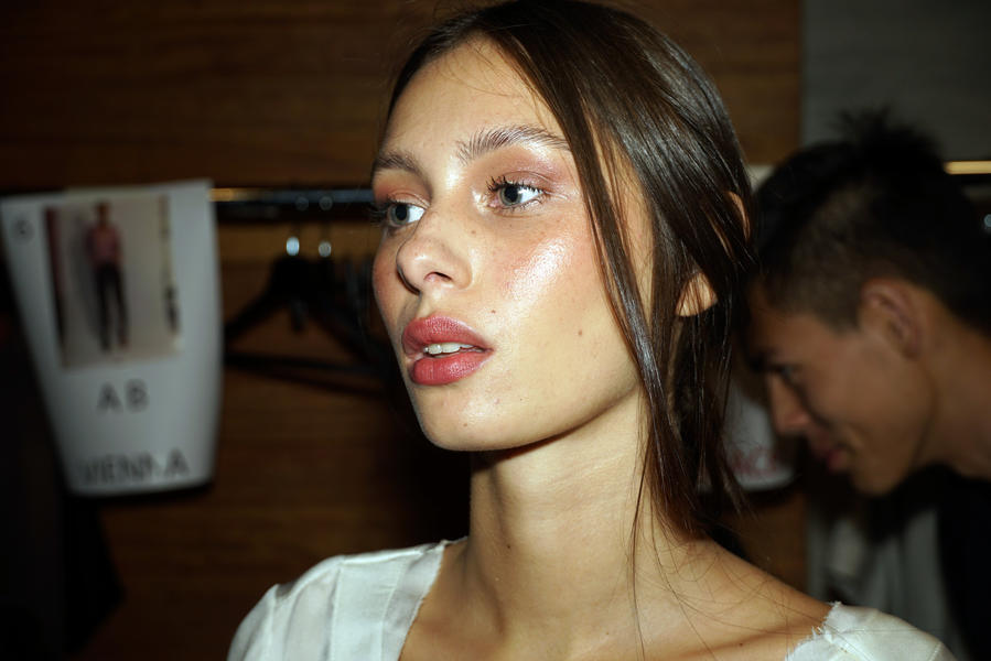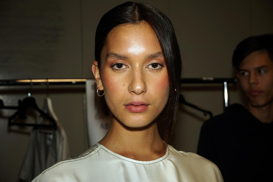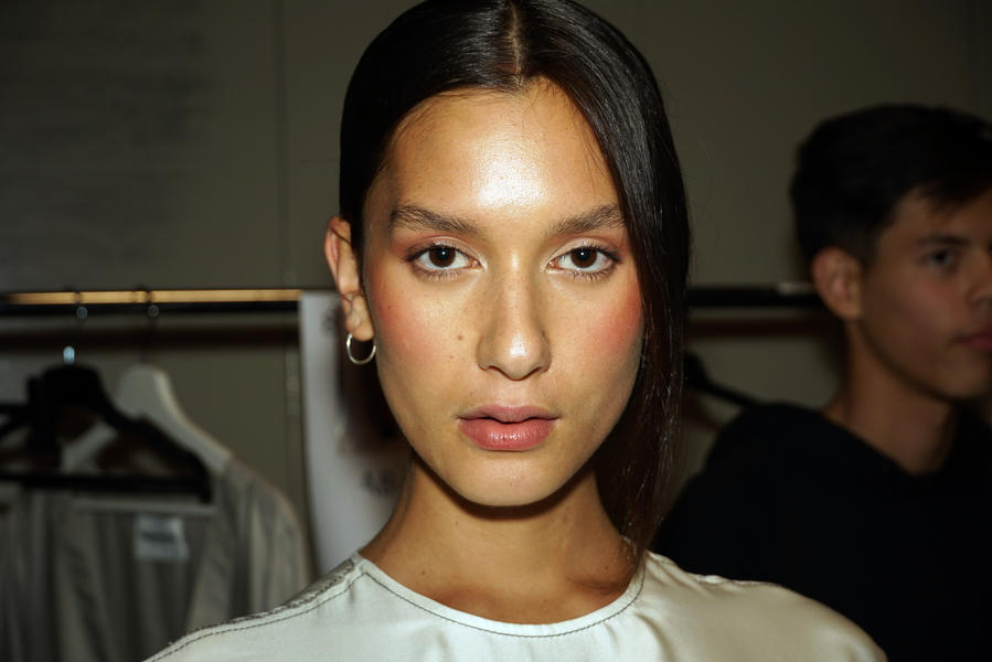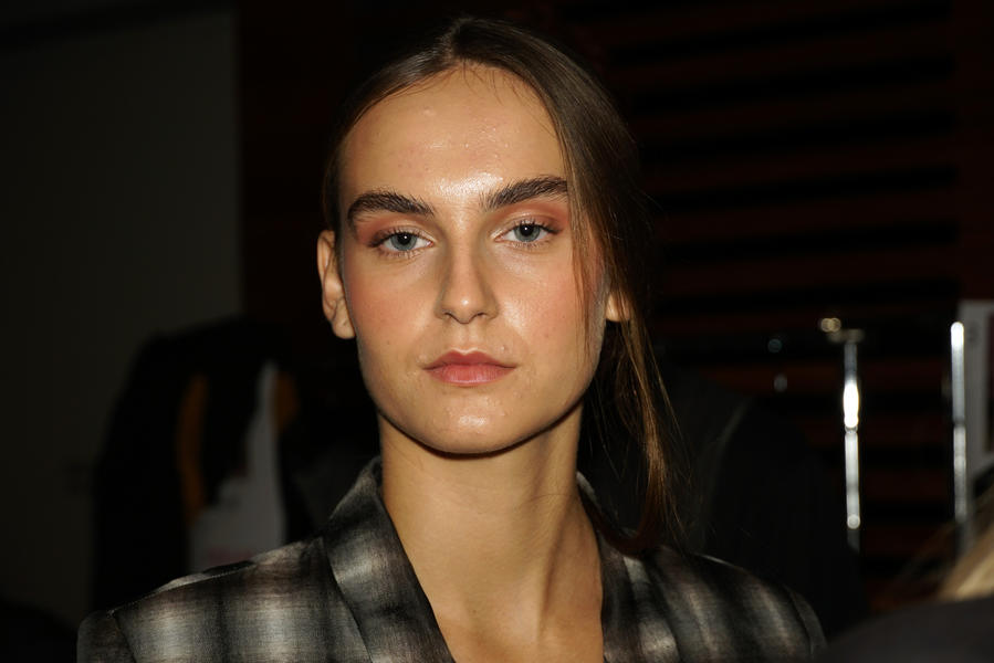 “We’ve used some Korean trends I’ve learned recently in this look. The clothing is very white, grey, and plum; so I wanted to include some of those colours into the look. The star product is the blush – blush is back. We’ve applied it with the Korean-way of applying it under the eye and where people usually highlight. It’s designed to lift the face and make you look youthful. We’ve also used the Glow Drops for a subtle highlight and Miracle Cushion Foundation for the skin. Brows are brushed up, and the blush is swiped across the eye with Hypnose mascara. Our lip colour was created mixing 397 Lipstick with another darker one and pressing it into the lip for a subtle lip stain.”