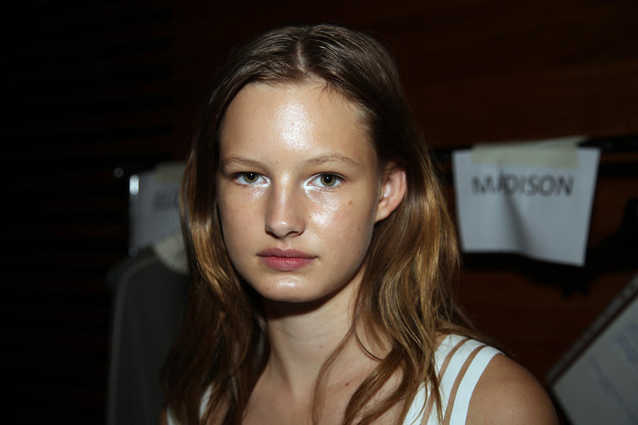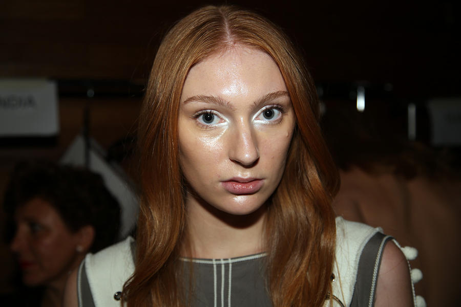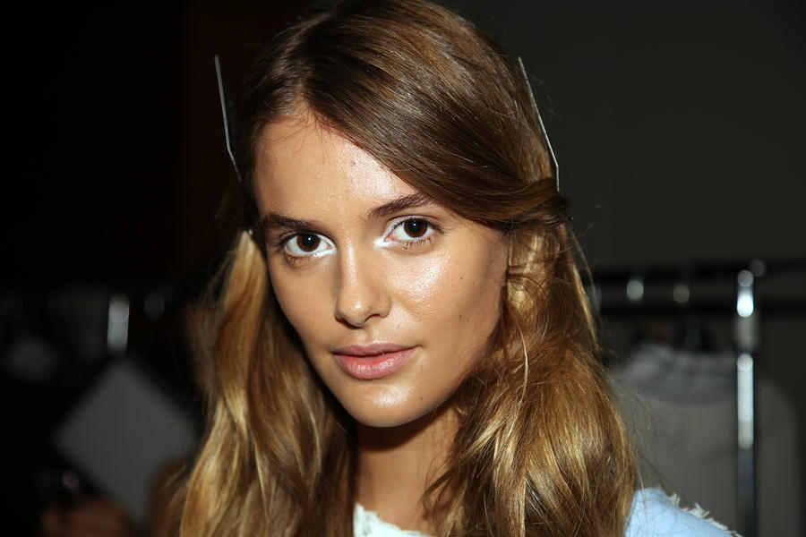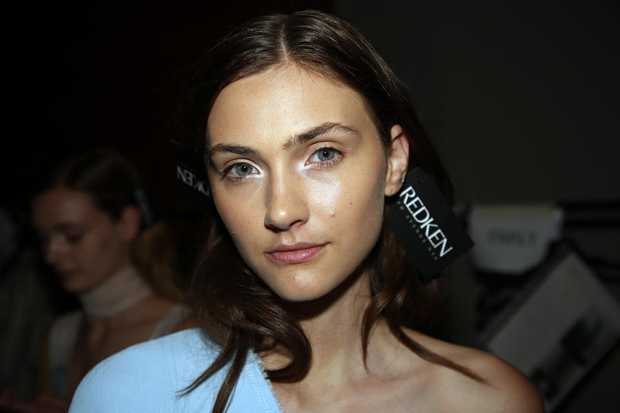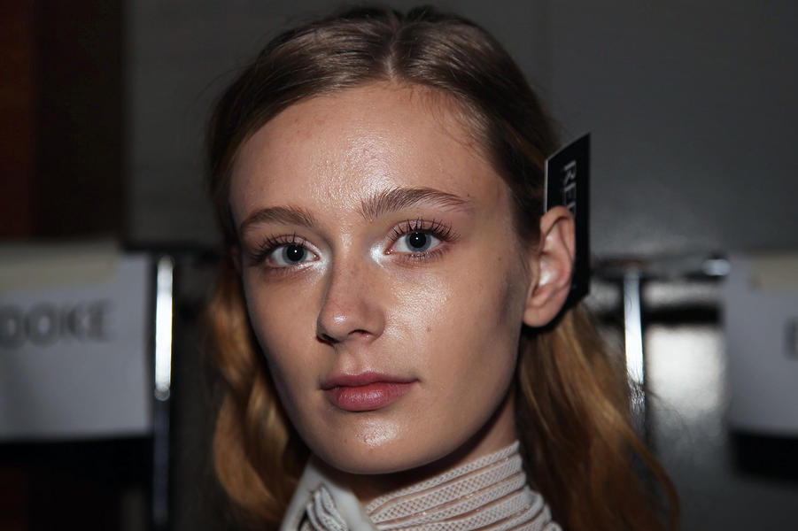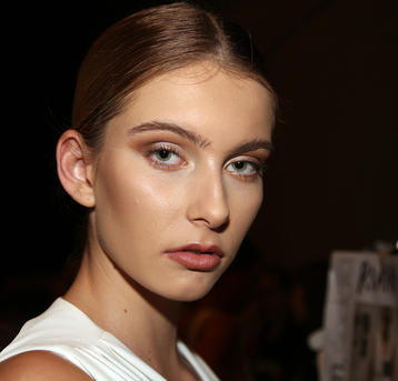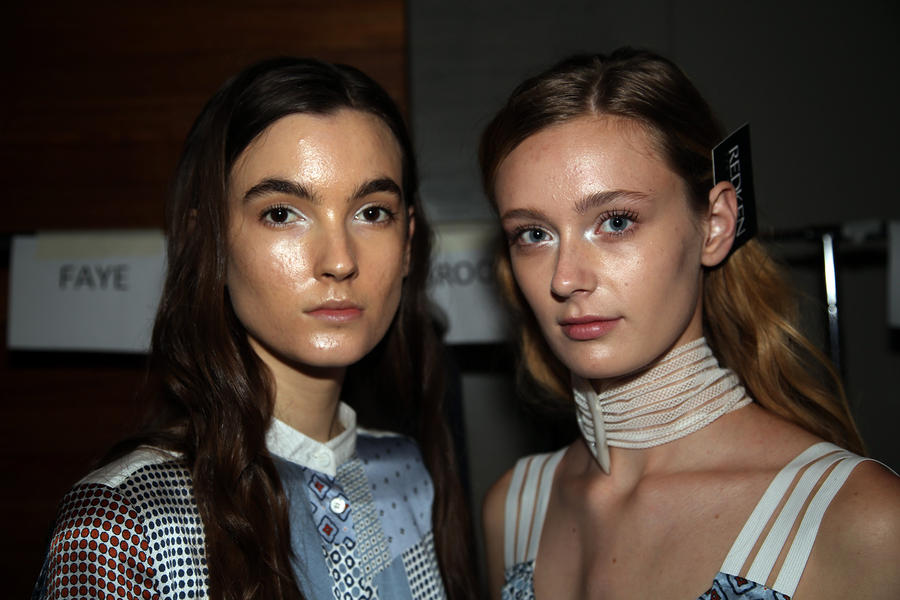 “The look is very clean and fresh with a little bit of a sporty feel. The designers wanted to keep the makeup looking quite natural and neutral. I absolutely loved that because their collection is so textural that it’s got to be all about the clothes today. The skin is completely natural, there’s a very minimal base. We’ve used our Napoleon Perdis Stroke of Genius Foundation to give a dewy finish, and by the time the show actually comes around, it will have almost completely melted into the skin and the natural contours will show. There’s no cheek, no addition of bronze and no contour because on the catwalk because it’s so intimate, their faces naturally highlight and contour with the shadows of the light. There is a touch of highlight - we’ve used our Napoleon Perdis Auto Pilot Lip Service which we’ve marinated into the high planes of the face and we’ve also applied it to the lips. The eyes are a little point of difference, in the inner corner we went with a white accent using Napoleon Perdis China Doll Gel Eyeliner in Yang and we set it with our Napoleon Perdis Loose Eye Dust Ice in Storm - on the catwalk it will look like a gorgeous little accent which won’t take away from anything else. Brows are simply brushed up and that’s it.”