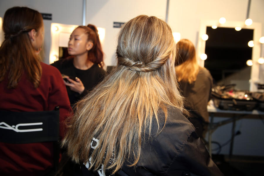 “The hair is really inspired by the idea of a girl who’s in the Caribbean on a hot balmy night, dancing her heart out. She’s on her own, empowered by her own self and beauty. Half way through dancing she’s feeling hot so she twists her hair back and pins it at the nape of her neck so she can carry on dancing. We’ve prepped the hair with a combination of products depending on the individual’s hair. We’ve used different Redken mousses like Full Frame 07 All-Over Volumizing Mousse, Volume Guts 10 and Rootful 06 and then we’ve blow dried, tonged the hair with a big curling wand, and then very casually twisted two pieces of hair low at the nape so it’s half up, half down, and pinned it into place. We’re finishing with a little argan oil - Redken Soft Argan-6 Oil - on the hairline so it looks a bit more refined but still like she’s been dancing all night.”