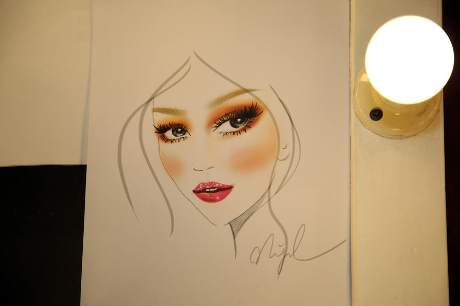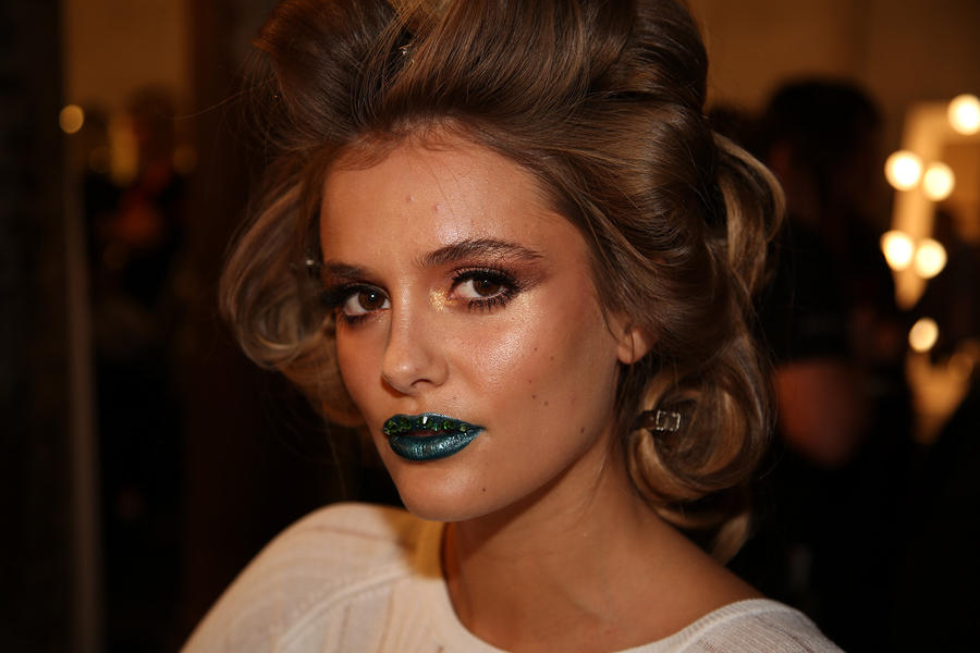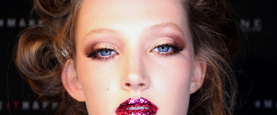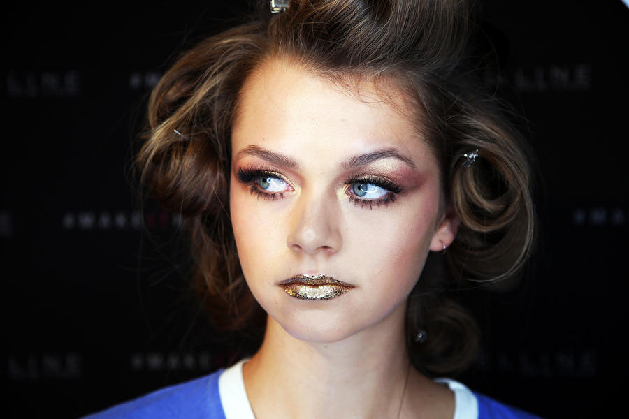 “It’s a 90s, healthy, hotel in Miami, bombshells galore, decadence, supermodel, big hair. We’re going to use a lot of colour as well, so on the eyes it’s going to be a beautiful gilded eye. Beautiful mascara, gilded cheeks and then on the lips we’re using the Color Jolt covered in rhinestones.”
