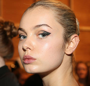 Gone are the days of manufactured brows or fully revved-up boy brows: “Brows were kept to a minimum with most runway shows using only a gel to brush them upwards,” says Srokowski. Sadsad agrees: “Brows are just brushed up. Still quite a full brow rather than a drawn brow – we’re brushing it up and then we’re using clear brow gel to set it,” says Sadsad.