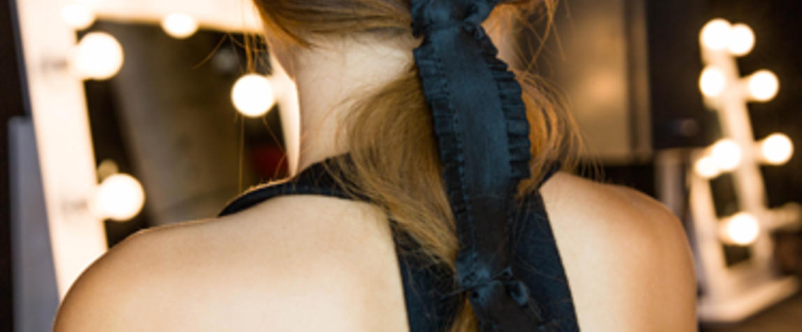I went and investigated the couture shows that have just happen in Europe and the looks from those runways revealed that things have got a lot smaller around the face and head, then there's a juxtaposition with volume somewhere else. So today's look will be very tight around the hairline. Once we have the ponytail in place we then tuck the front strands behind the ear but pull out the hair on each side of the elastic which creates a really unusual volume. The ponytail in contrast really helps elongate the models' neck.