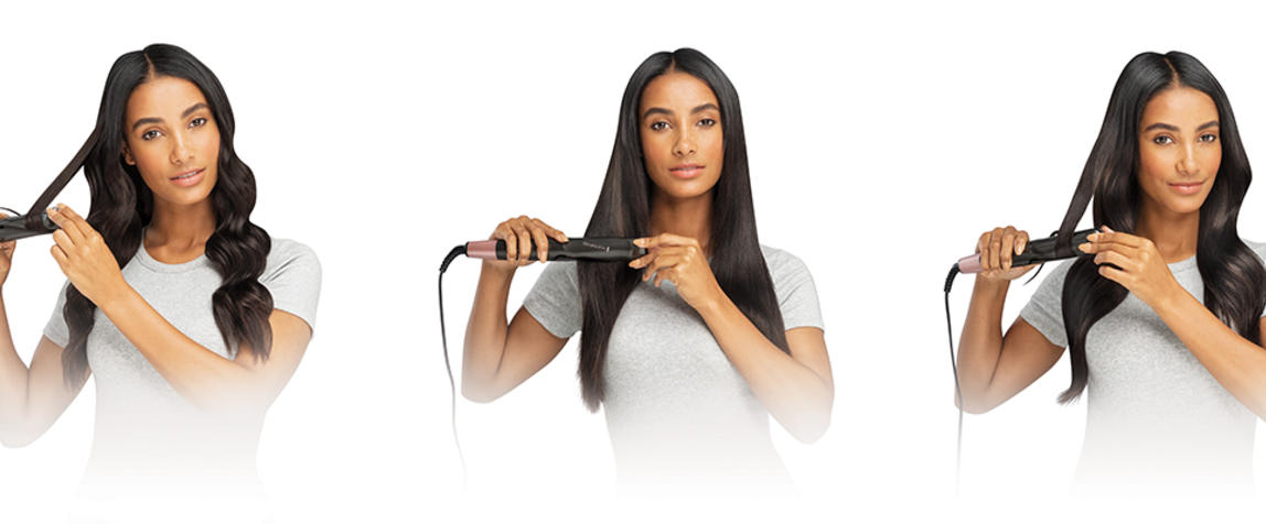 But the revolutionary tool offers the best of both worlds – with straight and sleek styles as easily possible as soft waves and larger-than-life curls. It simply works by adjusting the speed and angle with which you glide the tool through the hair.