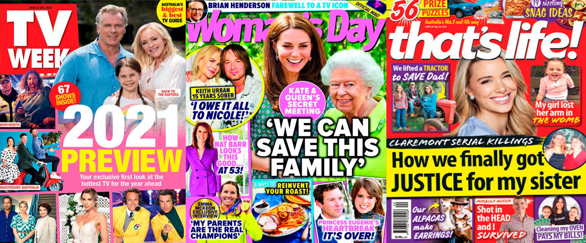 Under group publisher Fiona Connoly’s leadership, three new editorial divisions were created: Celebrity (Woman’s Day and New Idea), Entertainment (Who and TV Week) and Real Life (That’s life! and Take 5).
