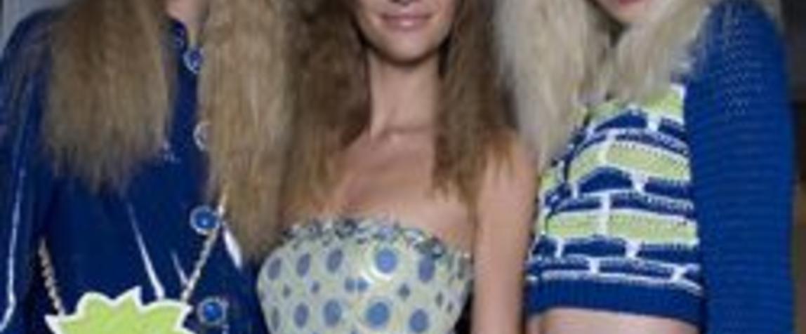 With the clothing displaying a melting pot of Shwe Shwe African fabric and 70s bell-bottoms mixed with platform wedges in acid brights, Pantene Pro-V global stylist ambassador Sam McKnight’s hair took a similar global journey. I wanted to capture the youthful spirit of the Moschino Cheap & Chic girl and celebrate the various influences impacting this collection. The grunge of East London, the crimping of the 70’s, the braiding of Africa and the polish of Milan,” says McKnight. The completed hair look has a ripple effect with the hair swapped across the forehead from the side parting creating a youthful finish.”