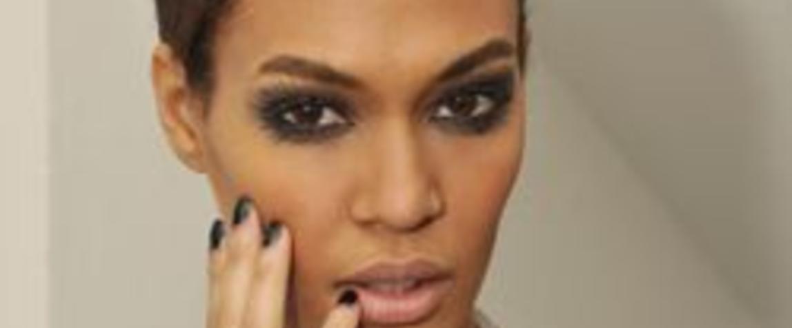 made its debut at Paris Fashion Week last week, sponsoring the beauty look at the Anthony Vaccarello Fall 2012 show. In addition to creating the burgundy-black eyes and contoured cheeks, the brand had global spokesmodel Joan Smalls walking the runway.