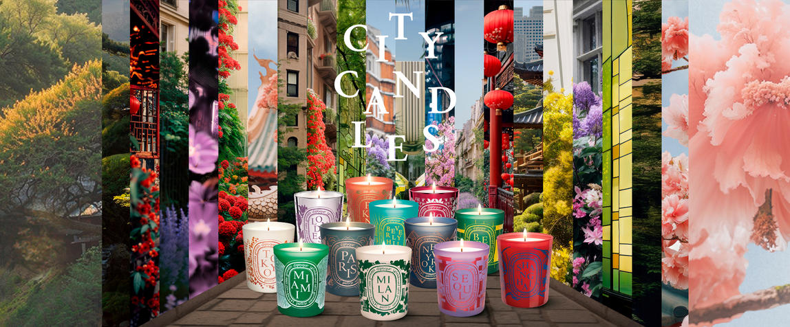 Diptyque captures the iconic spirit of a city in a candle, with a graphic pattern inspired by unexpected and singular architectural details, and fragrant notes that encapsulate the soul of the city.