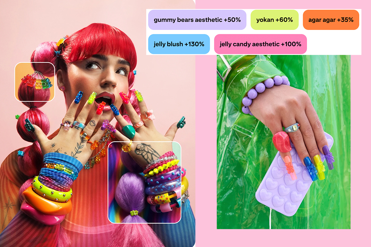 In 2026, we’re going full-on gummy. Gen Z and Millennials are behind this ASMR overload—picture bendy phone cases, elastic cheek tints and probiotic treats that have that spring-back bite. Expect rubberized nail art and 3D jewellery to become your new tactile obsession.