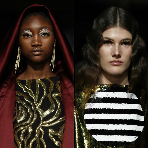 Swatches of primary colours grazing lids, lips, cheeks and noses, along with glitter and metallic inspiration was served down multiple runways. Vivienne Westwood remained as innovative as ever, with makeup artist, Isamaya Ffrench, decorating select models' faces with scintillating gold glimmer, from the forehead to the chin.