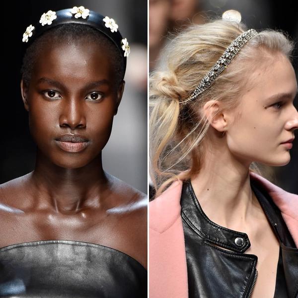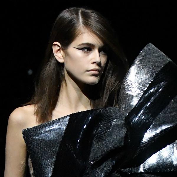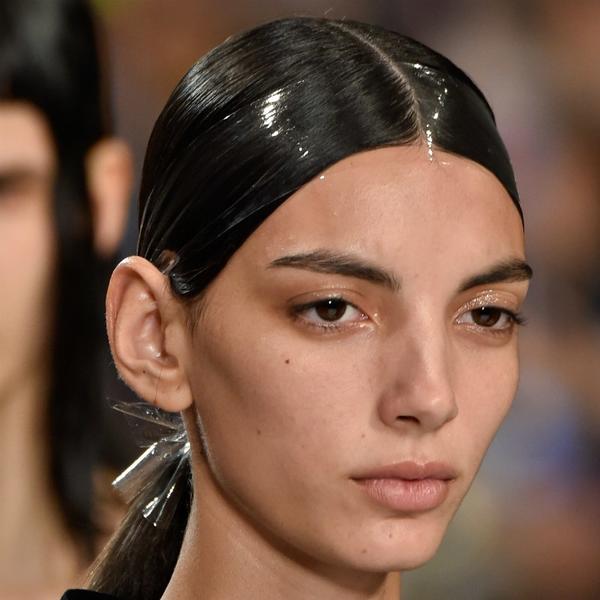 Sleek hair was a trend on the Paris runways, as it was in Milan. Hairstylist, Jawara, created an ultra-slick look for Mugler, and Eugene Souleiman took mirror-like shine into overdrive with clear headbands wrapped around already sleek-and-shiny low ponytails at Maison Margiela.
