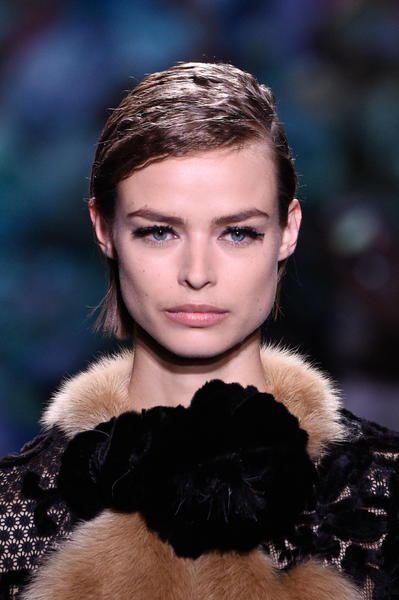 Bold, block colour on the eyes is out; and smokey, soft shadow is in. Tom Pecheux created colourful, smudgy eyes at Chanel; and Linda Cantello created sultry, smokey eyes at Armani Privé. Speaking on the look, Cantello (Giorgio Armani Beauty’s international makeup artist) said: “Mr. Armani wanted a very mysterious woman, so we wanted to do a shadowy eye that had no hard lines. So it’s this kind of air of mystery. It is like a veil of colour.”