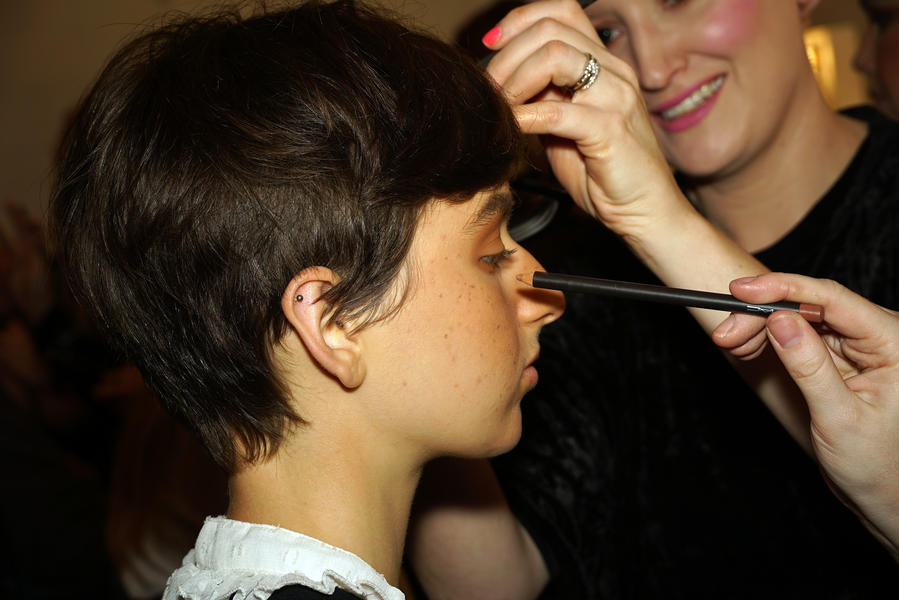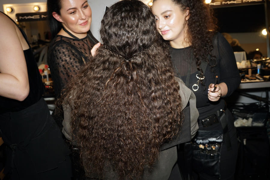 “The inspiration behind today’s look was that they wanted a really ethereal, garden vibe. They wanted a really youthful appearance and one of the references from the design team was a Picnic At Hanging Rock, 90s aesthetic; but also still keeping it very not gender specific. We have both female and male models today but we’re keeping the hair the same for everyone