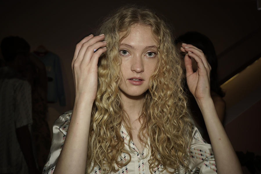"The show today is all about femininity and Venus is our inspiration. We've essentially worked with the girls' natural hair style but using the KMS Add Volume Styling Foam and KMS Therma Shape 2 in 1 Spray which gives shape and texture. I've gone through and done a light tonging on some, while the girls that have long hair have a plait or low pony that's feminine but not overdone."