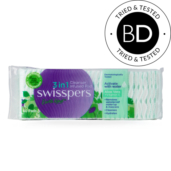 What we think: The 3 in one Cleanser Infused Pads by Swisspers are a game changer! I was unsure what to think when I first came across this product – how could they possible be full of so much goodness and be so effective AND good for the planet in one little pad. I was pleasantly surprised and have now found myself reaching for them whenever I need a freshen up. Add a splash of water and all the Aloe & Vitamin E goodness is activated. They then so gently but effective remove makeup (including waterproof mascara!!!), cleanses the skin and leaves your face feeling hydrated and refreshed. Best news no need to rinse your face after use. I would recommend these to anyone on the go or with sensitive skin and who might steer clear of makeup wipes. These are the softer and gentler alternative.