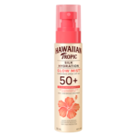 Hawaiian Tropic Silk Hydration Glow Mist™ Sunscreen Spray SPF50+ offers very high UVA+UVB protection with Hyaluronic Acid and Grape Seed Oil. This delicate fine clear mist leaves skin radiant and glowing. The formula is lightweight, invisible and provides 12 hour moisturisation. This convenient spray format is fast absorbing and 4 hr water resistant. It contains mango and papaya extracts and is beautifully scented in our Iconic Hawaiian Tropic scent. It is dermatologically tested, non-comedogenic and ideal for daily use.
