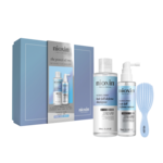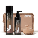 JUSTICE Professional Thinning Hair Rescue Pack is a hair care pack that helps control early signs of hair thinning, helps increase density and thickness, supports stronger growth and helps the hair to look and feel fuller. Formulated with baicalin, soy and wheat sprouts, eucalyptus oil and menthol. The set includes: Shampoo, Lotion, Scalp Massage Brush and Cosmetic Bag. For best results, use Shampoo and Lotion daily.
