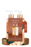 Natio Wellness - Peaceful is a limited-edition gift set for Christmas 2025. Bring zen into their everyday bathing and hand care rituals with the protective goodness antioxidant Pomegranate and nurturing, aromatic luxury of pure plant oils. Peaceful gift set includes the Wellness Shower & Bath Gel, Body Lotion and Intensive Hand Cream, plus a complimentary bath sponge, presented in a Natio keepsake box.